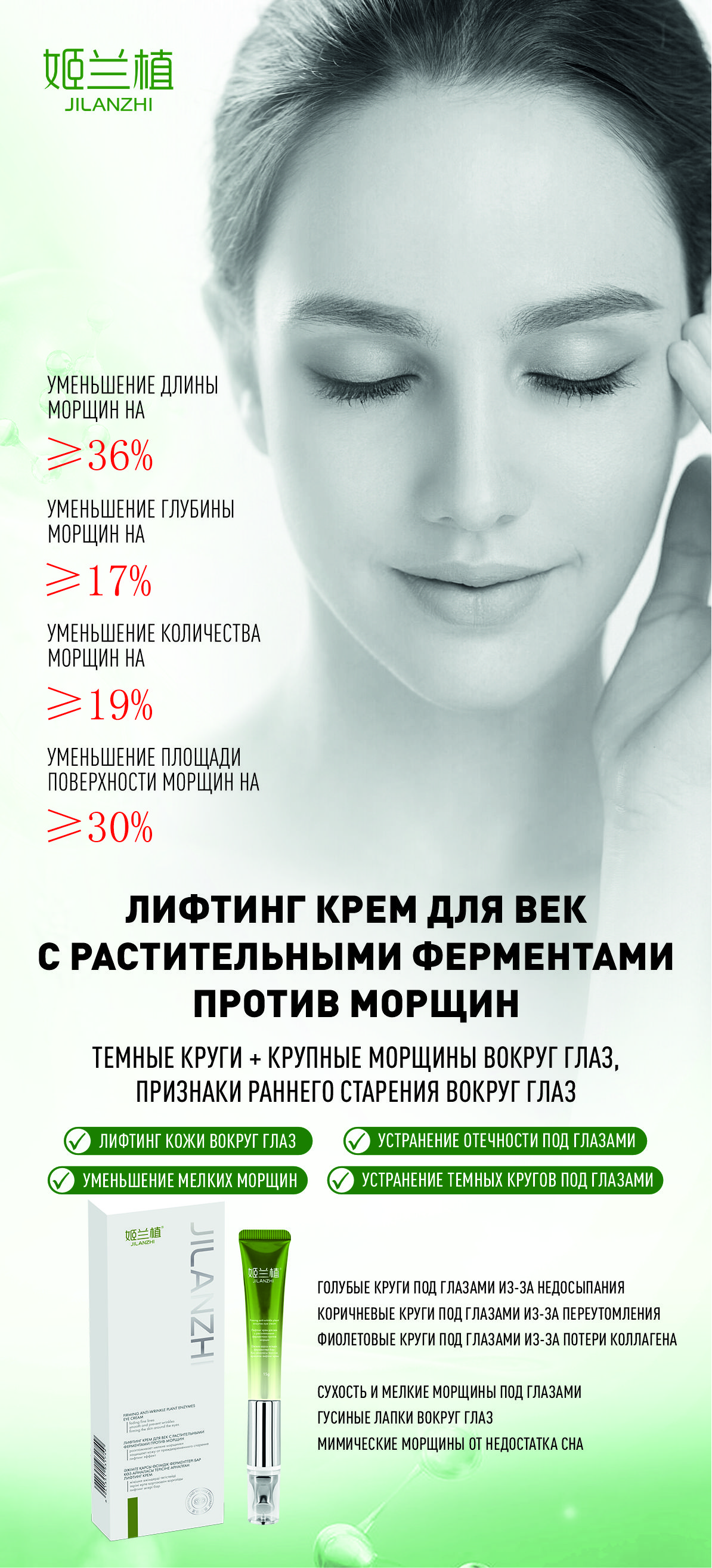 Лифтинг крем для век с растительными ферментами против морщин